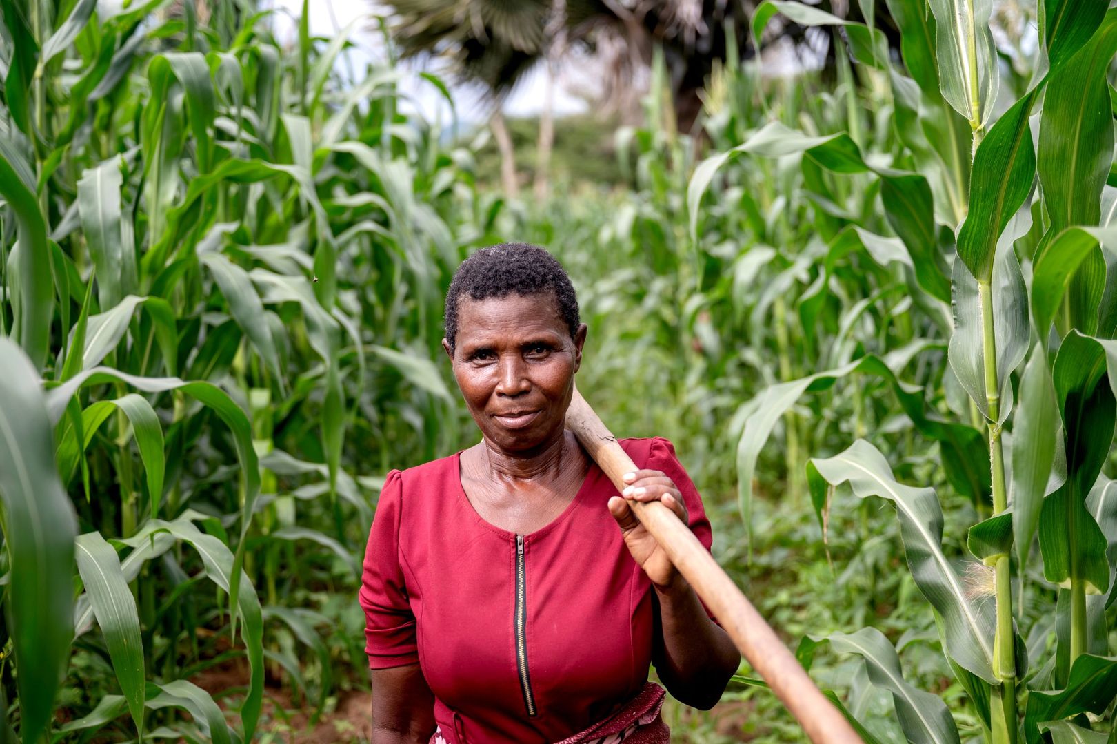 Den dyrkede jord breder sig over 4-5 hektar land for hver af kvinderne. Racheal har tilmed ansat to fra landsbyen til at passe hendes marker.